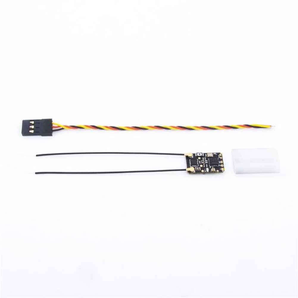 The RadioMaster R81 Nano Receiver is a compact and lightweight 2.4GHz receiver designed for RC drones. Weighing only 2g and measuring 17x11mm, it offers 8 channels and a frequency range of 2400-2483.5MHz. With a power input range of 4.5-6V, it supports SBUS output and is compatible with FrSky D8 systems. The receiver boasts a control distance of over 1km and features an RSSI output channel for signal strength monitoring. Binding is simple with a straightforward process, and fail-safe protection is easily set up to secure your drone’s safety. The antenna length is approximately 6cm, ensuring reliable communication during flight.