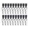 These RC Car Body Shell Clips Buckles are essential for securing the body shell of your RC car models. Made from durable metal, they come in black and silver, ensuring both strength and style. The clips are available in two sizes: 0.7 x 17mm and 1 x 20mm, and they weigh approximately 10g. Compatible with 1/20 and 1/24 scale RC car models, these clips are universal accessories designed to fit a variety of vehicles. Choose from packs of 12, 20, or 30 clips to suit your needs.