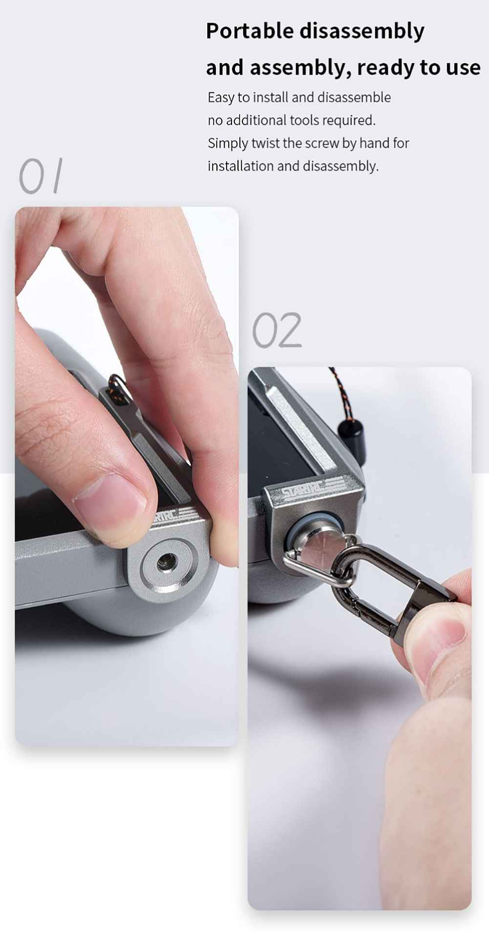 – Easy to install and disassemble, no additional tools required, just tighten screws by hand. Conveniently store without the need to disassemble and can be directly stored in the original package, waterproof box, and carry case without the worry of losing the balance strap metal bar.