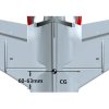 CG: 60-63mm backward from leading edge of wing