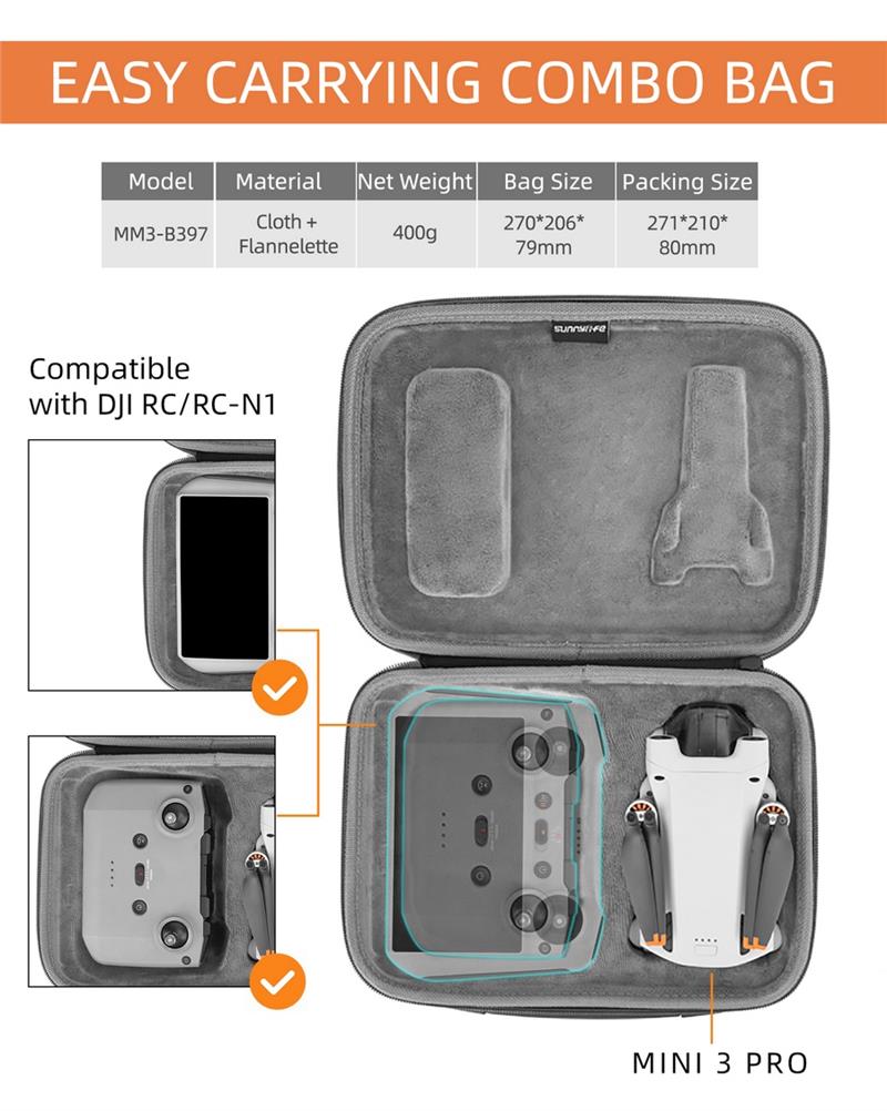 – Soft Middle Partition Layer Care For Your Mini 3 Pro.large Elastic Mesh Bag With Zipper:propeller Blades, Paddle Clip, Data Cable, Camera Cover, Filter, Joystick, Controller Strap And Small Accessories.