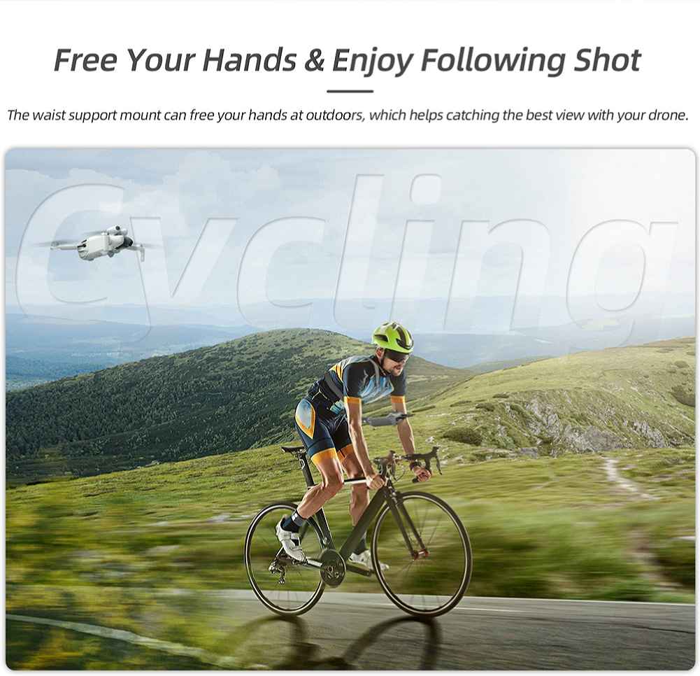 1.Hands-free outdoor shooting: Secure the remote control on the waist support mount for easy outdoor filming.