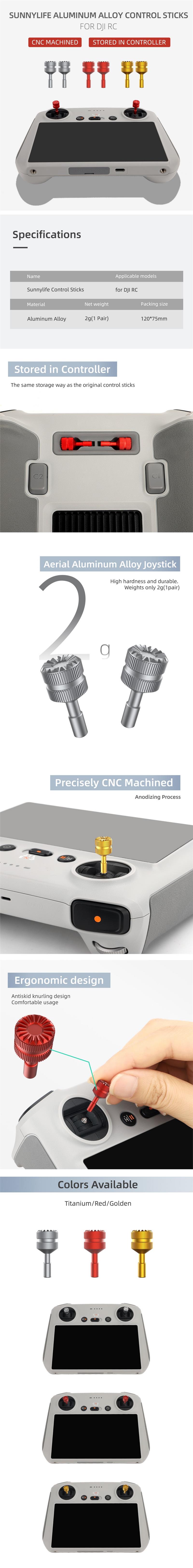 Sunnylife RC Smart Remote Control Joystick Sticks Rocker Thumb Aluminum for DJI Mini 3 PRO Screen Controller