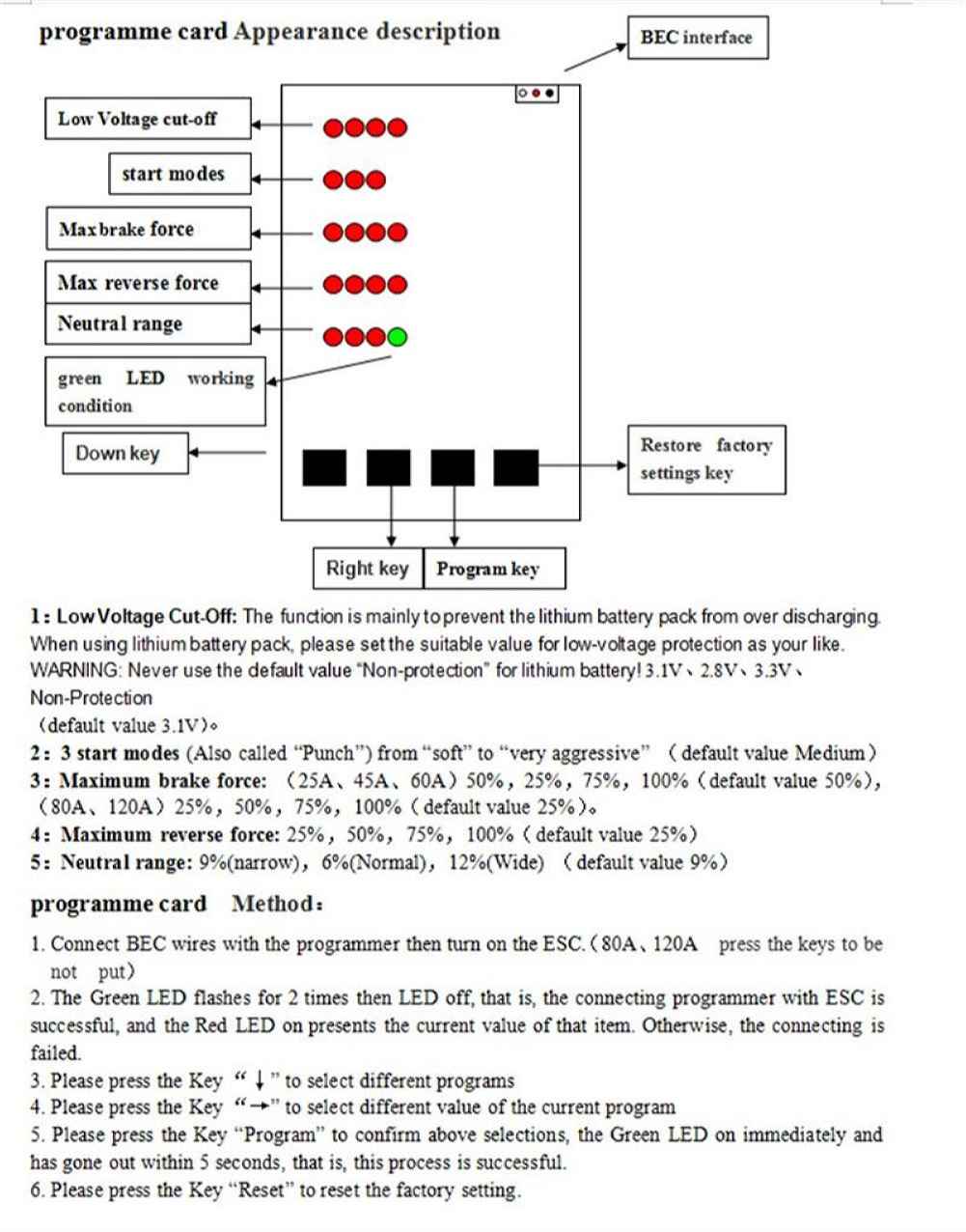 Battery:2-3 cells Li-Po / 4-9 cells NiMH