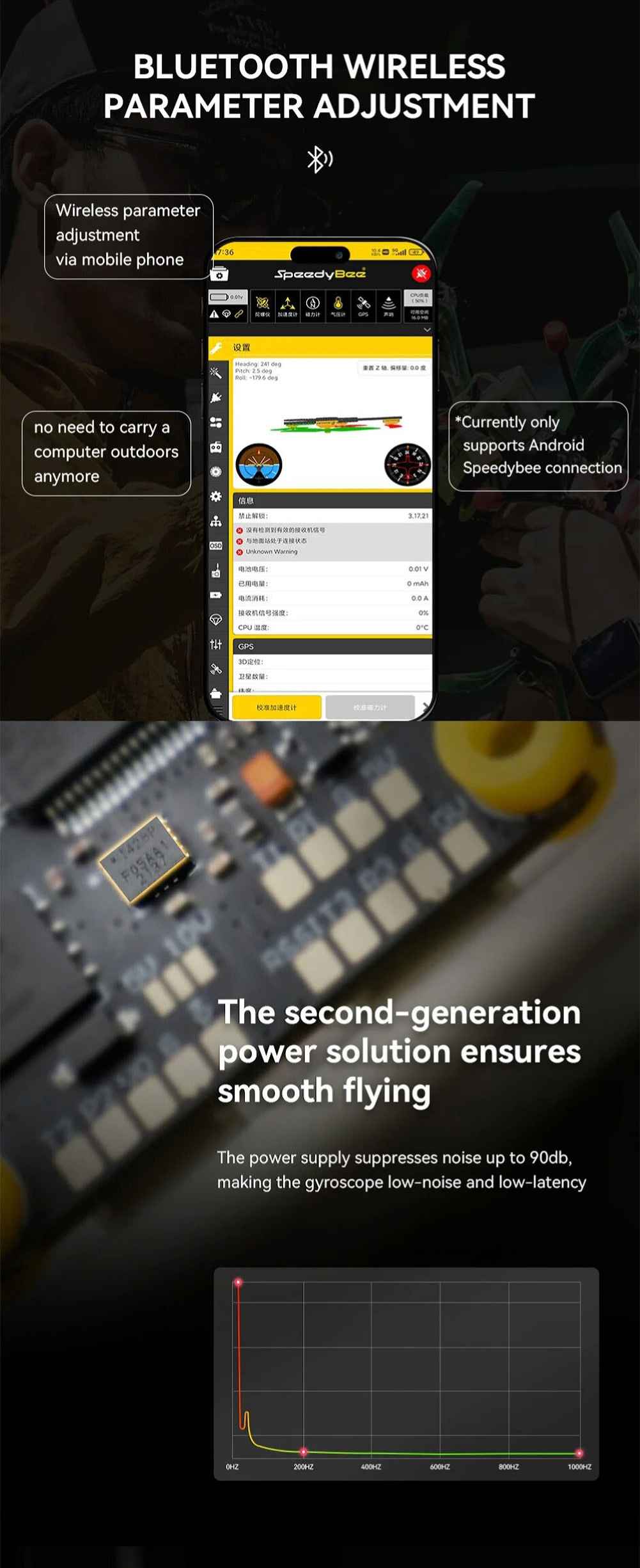 • F7 SE flight controller with Bluetooth for wireless connectivity