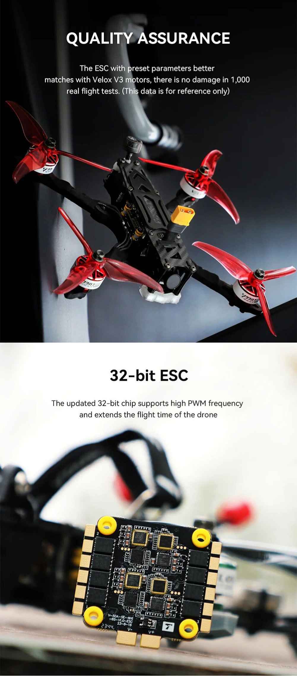 • Compatible with TMOTOR Velox motors for enhanced stability