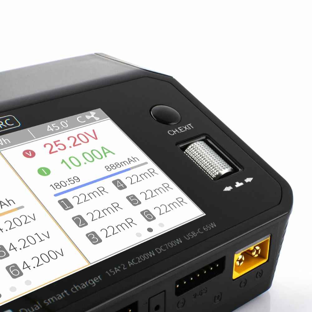 ToolkitRC M6DAC AC 200W DC 700W 15A*2 USB-C 65W QC3.0 Dual Channel Smart Lipo Battery Charger Discharger for 1-6S Lipo Battery