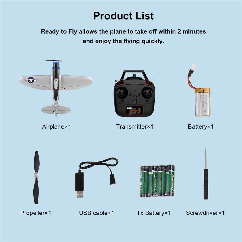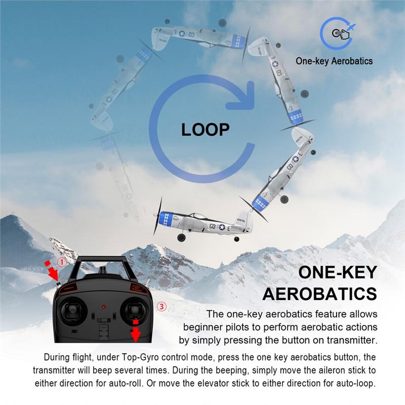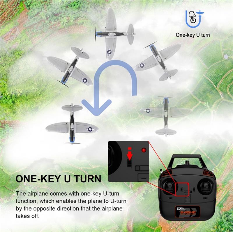 TOP RC HOBBY 402mm Mini P47 2.4G 4CH 6-Axis Gyro One Key Aerobatics U-Turn EPP Scaled Warbird RC Airplane RTF for Beginners Compatible OpenTX Transmitter