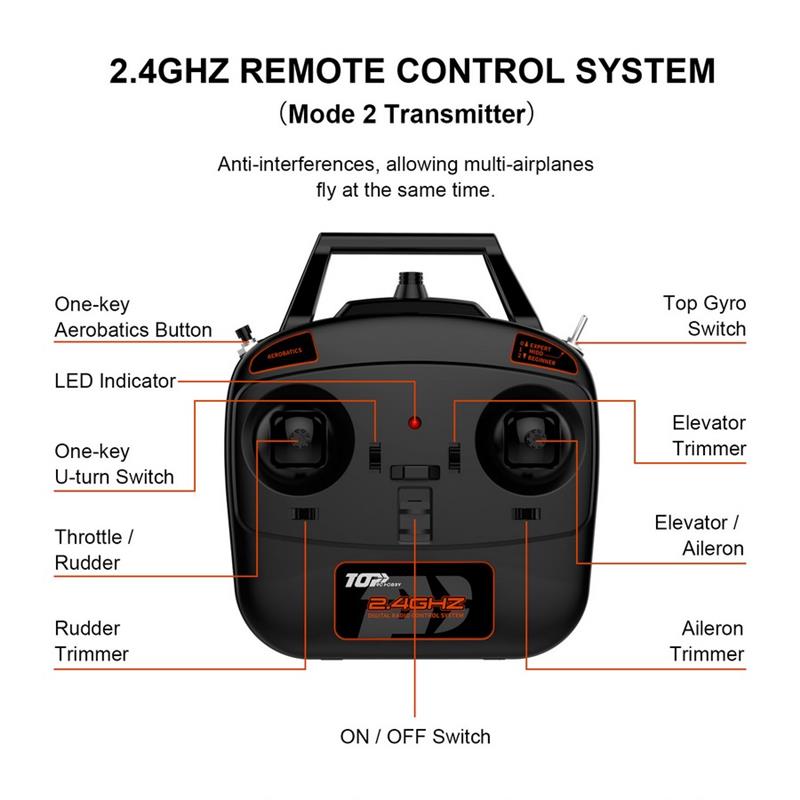 – 2.4G remote control system, anti-interference signal, multi pilots can fly at the same time.