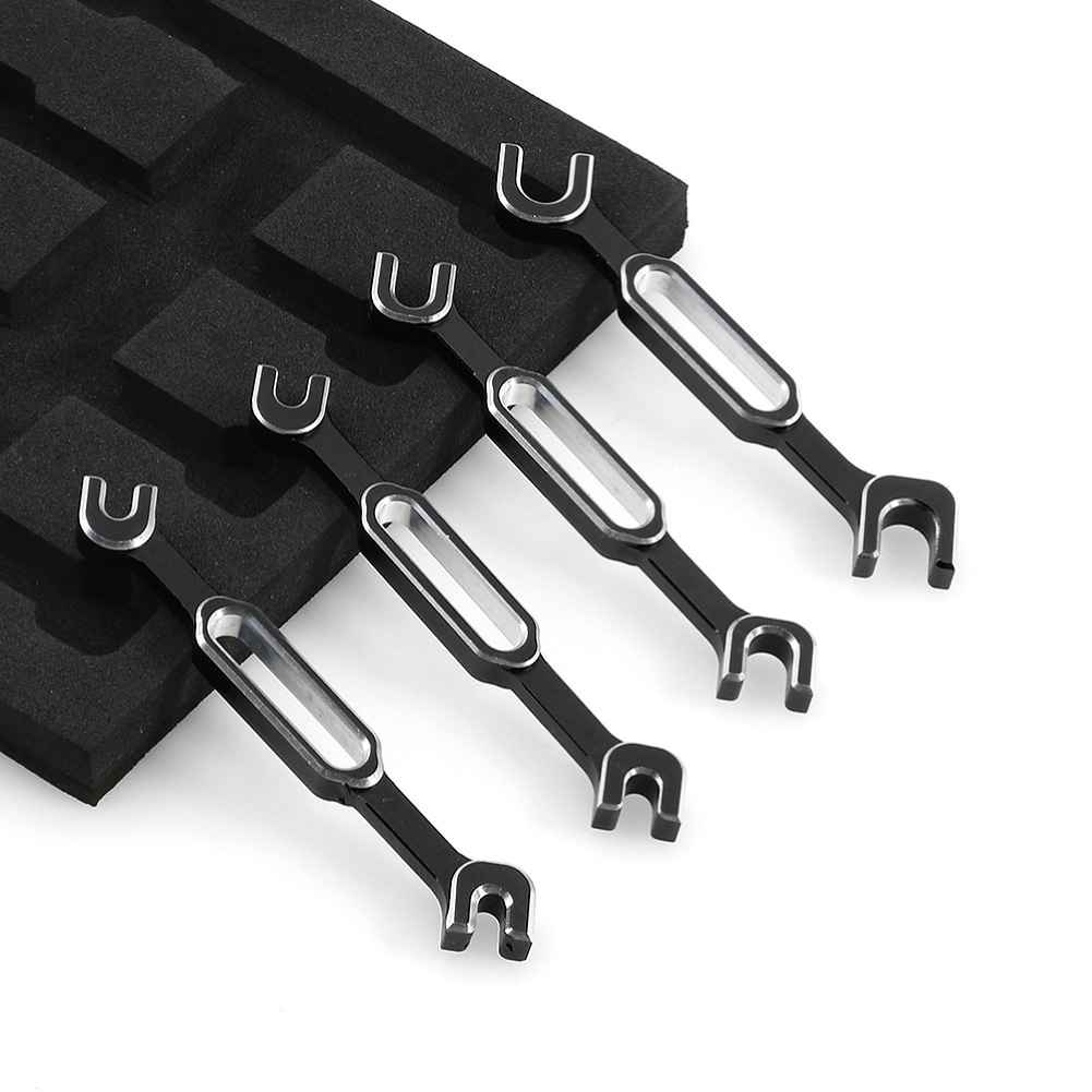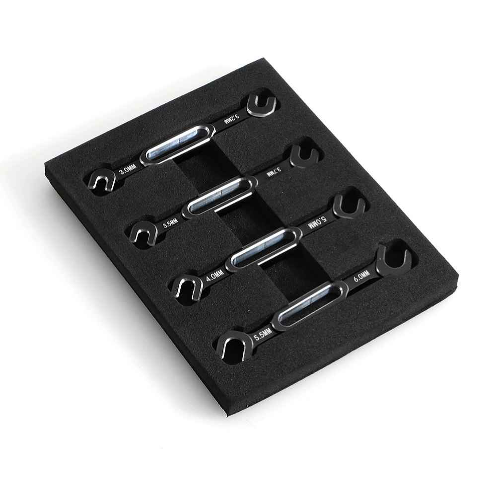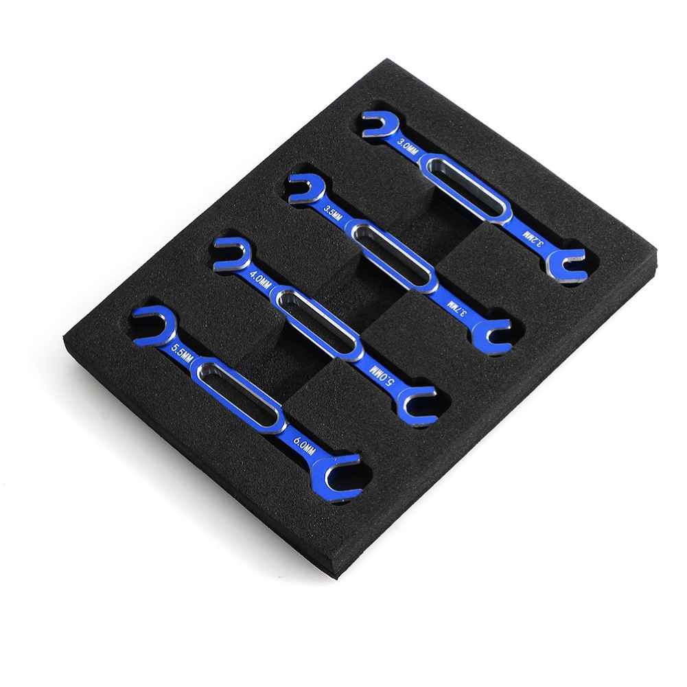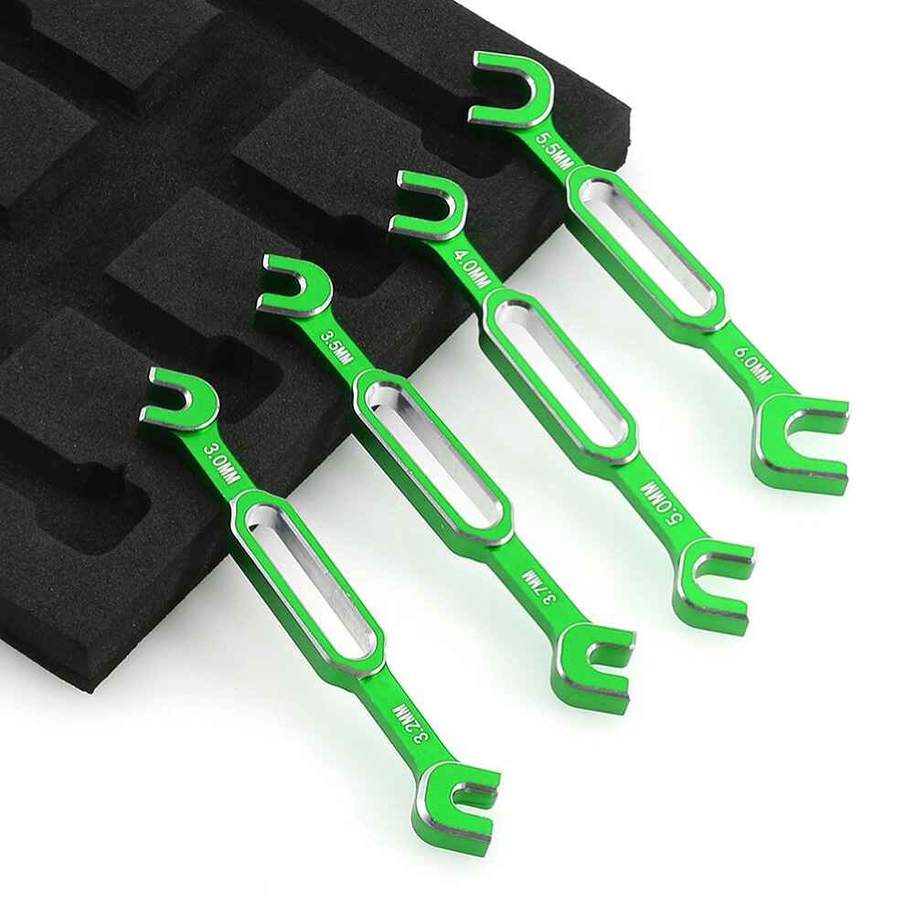 This versatile RC Car Wrench Set includes four durable metal wrenches designed to fit various sizes ranging from 3.0mm to 6.0mm. Available in vibrant colors such as red, blue, green, and black, these wrenches are perfect for removing turnbuckle nuts and ball end joints on RC cars, drones, and boats. With a total weight of just 21.5g, this lightweight set is easy to handle and store. Please note that color variations may occur due to different monitor settings and lighting conditions.