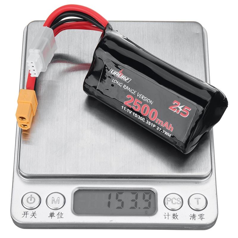 1x URUAV 11.1V 2500mAh 15/30C 3S Long Range Li-ion Battery