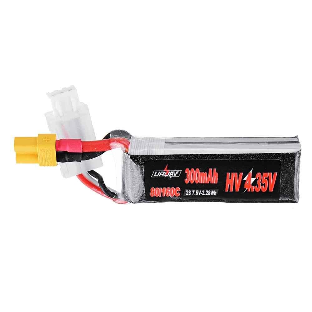 4Pcs URUAV 7.6V 300mAh 80C/160C 2S HV 4.35V Lipo Battery XT30 Plug for BETAFPV Whoop Quadcopter