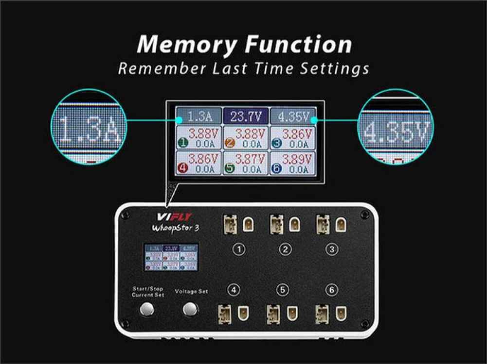 閳荤祫emory Function閳荤常IFLY WhoopStor 3 added the memory feature of remembering last time settings, no need to set the charge current every time you turn it on.