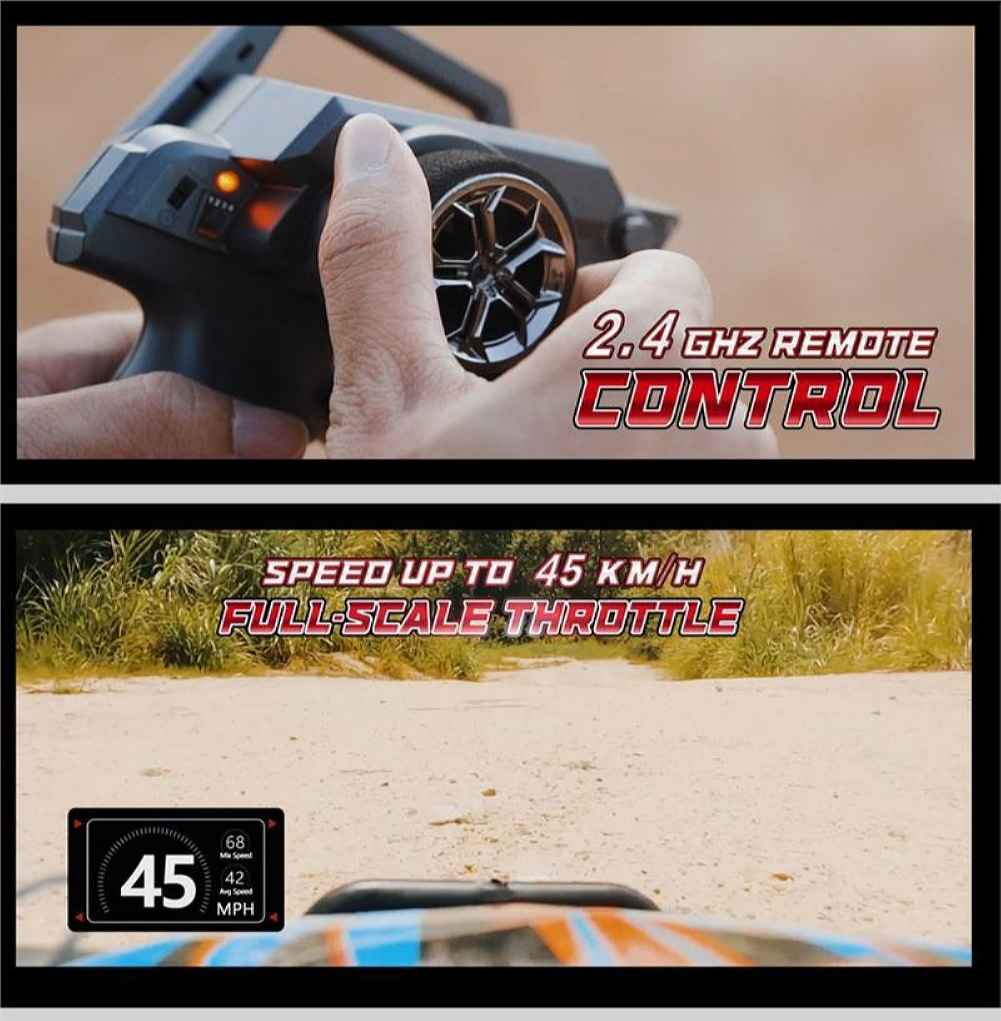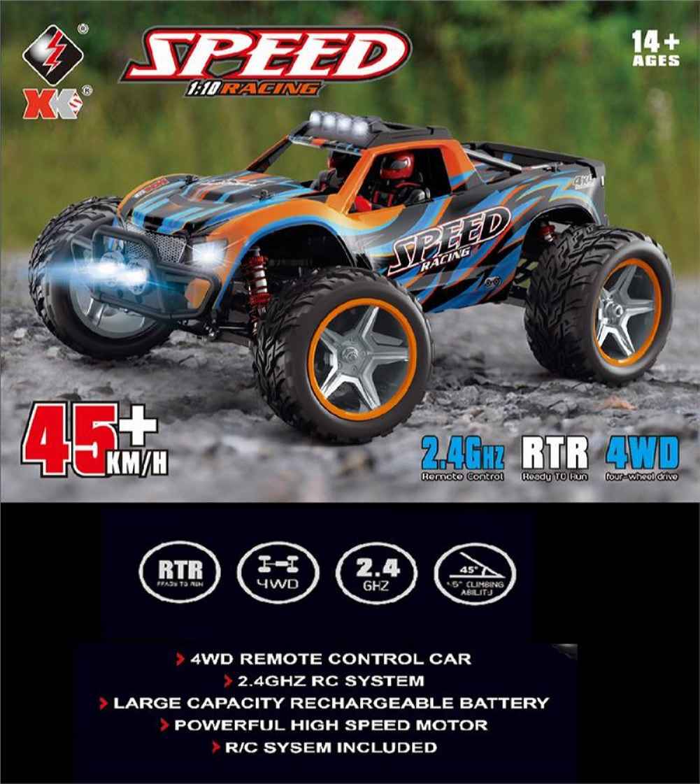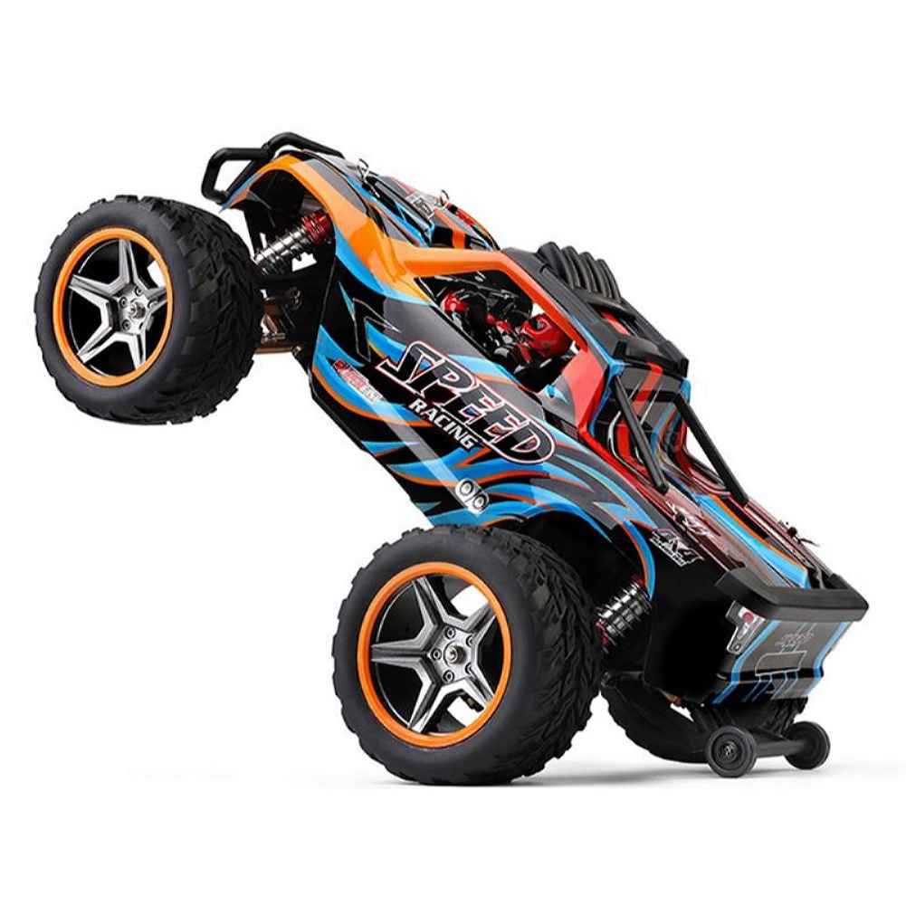 The Wltoys 104009 1/10 Scale RC Car is a high-speed remote control vehicle designed for thrilling performance. Featuring a powerful 550 brushed motor, this 4WD car can reach speeds up to 45km/h. The model is equipped with a combined ESC and receiver, and a 2.4GHz transmitter for precise control. Its four-wheel independent suspension and metal shock absorbers ensure a smooth ride, while the metal gears and steel drive shaft enhance durability. The RC car is powered by a 7.4V 1500mAh rechargeable battery, providing up to 8 minutes of run time. With a control distance of 100 meters, this RC car offers an exhilarating driving experience.