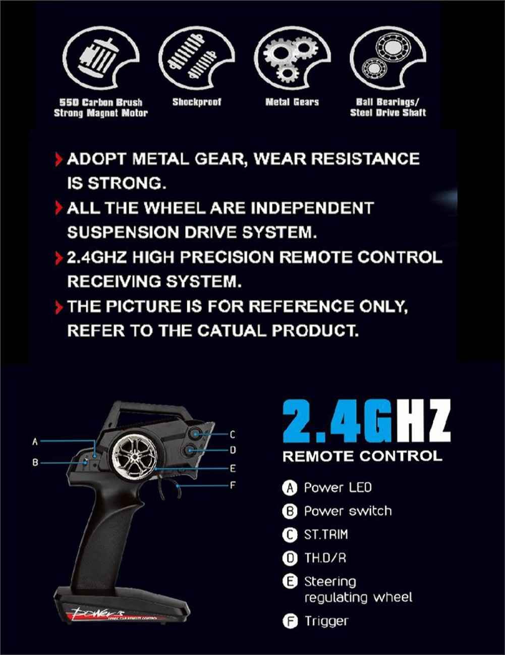 4. The bearing and steel drive shaft of the whole vehicle greatly increase the service life of the remote control vehicle.