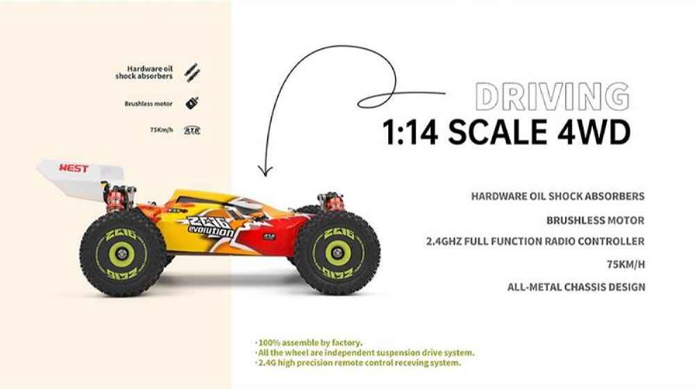 Wltoys 144010 1/14 2.4G 4WD High Speed Racing Brushless RC Car Vehicle Models 75km/h