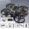 Up/down/forward/backward, left/right turn, sideways flight, LED lights, 360‵ stunt roll, headless mode, one-button automatic return, altitude hold mode, Optical Flow Hover, WiFi FPV, dual-lens switchable, VR glasses, screen controller