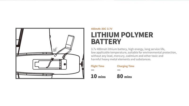 – 3.7V 400mAh high discharge rate lithium battery,high energy,long service life.
