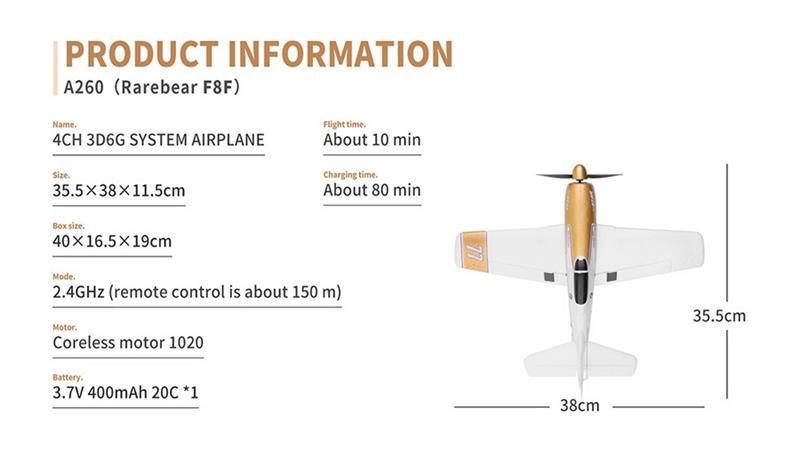 XK A260 Rarebear F8F Fighter 380mm Wingspan 2.4GHz 4CH 3D/6G System EPP RC Airplane Beginner RTF