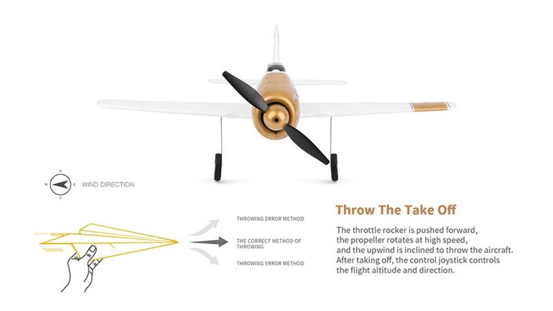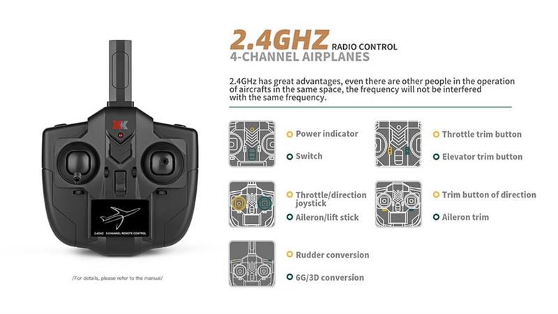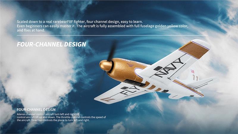 – The four-channel design is simple and easy to learn. The aileron channel controls the aircraft to turn left and right, the elevator controls the aircraft to climb and descend, and the throttle channel controls the speed of the aircraft.