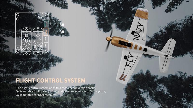 – The flight control system adds two receiver conversion sockets. 5V is suitable for FUTABA (S-BUS) J and other receivers with (S-BUS) ports, and 3V is suitable for DSM receivers.