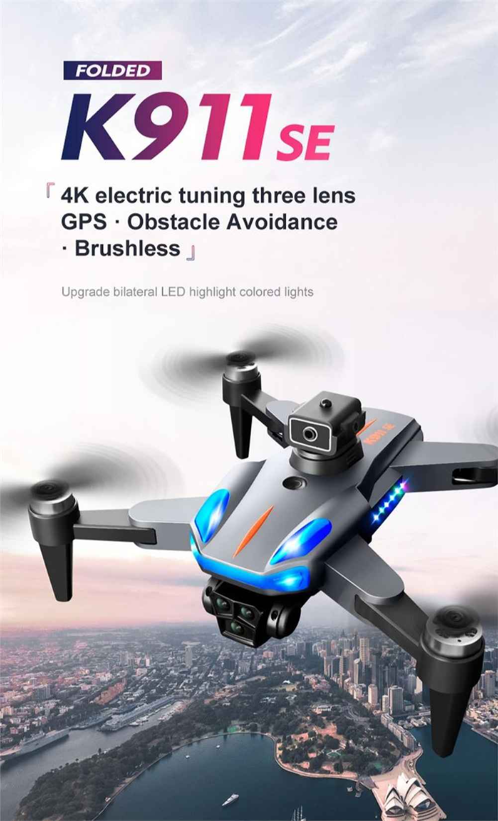 The XKJ K911 SE RC Quadcopter is a foldable drone featuring a 4K HD ESC three-camera system, offering front, vertical, and overhead shots for versatile photography. It includes a 5G WiFi FPV for real-time image transmission and is equipped with GPS and optical flow positioning for precise flight control. The drone’s infrared obstacle avoidance ensures worry-free navigation, while the 1800mAh battery provides up to 20 minutes of flying time. With features like waypoint flight, point of interest, and automatic return to home, this drone is perfect for capturing stunning aerial views. The six-axis gyroscope and brushless motors deliver smooth and stable flight.