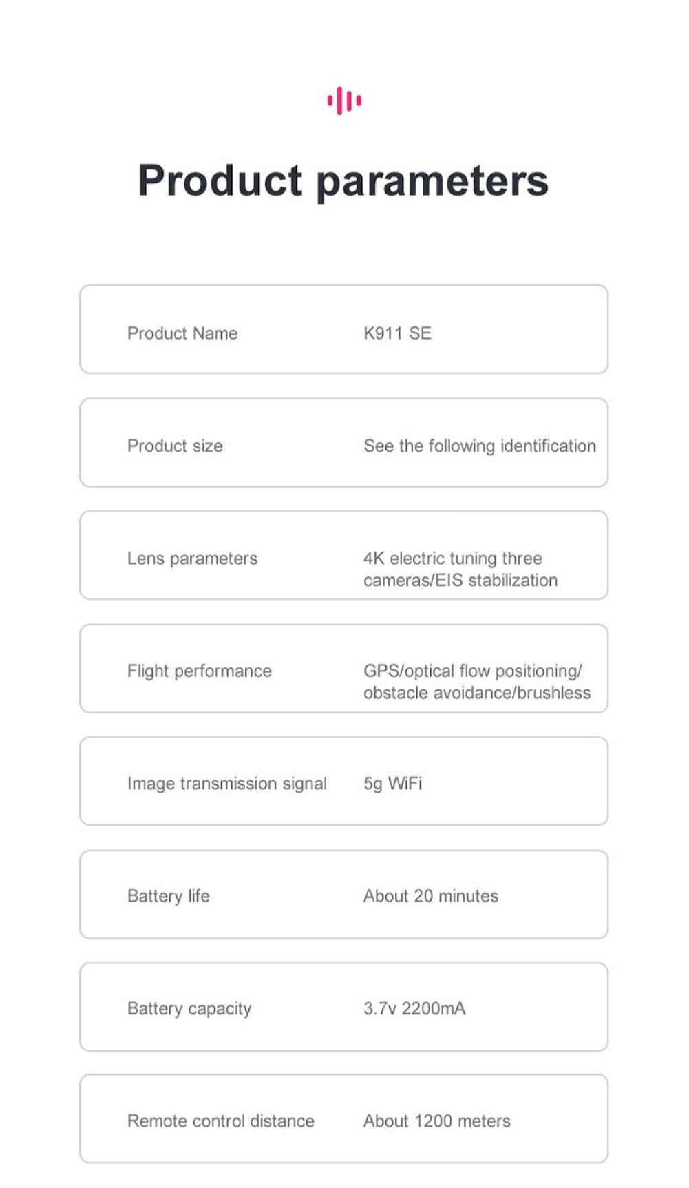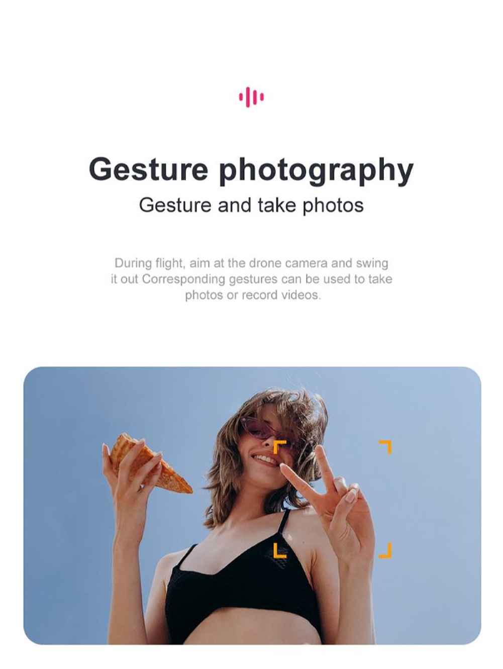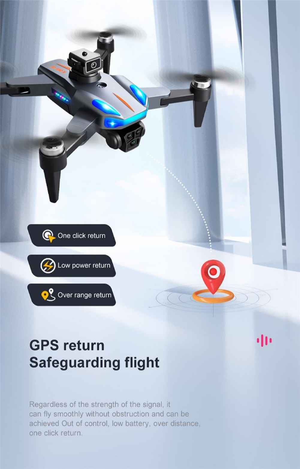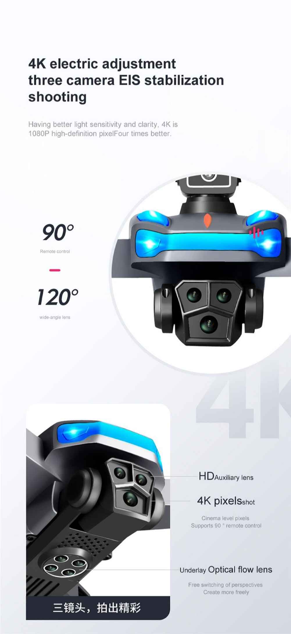– With 4K ESC HD camera, support 90~ remote control of lens angle to make the shooting wider.- GPS positioning mode provides a more accurate flight.