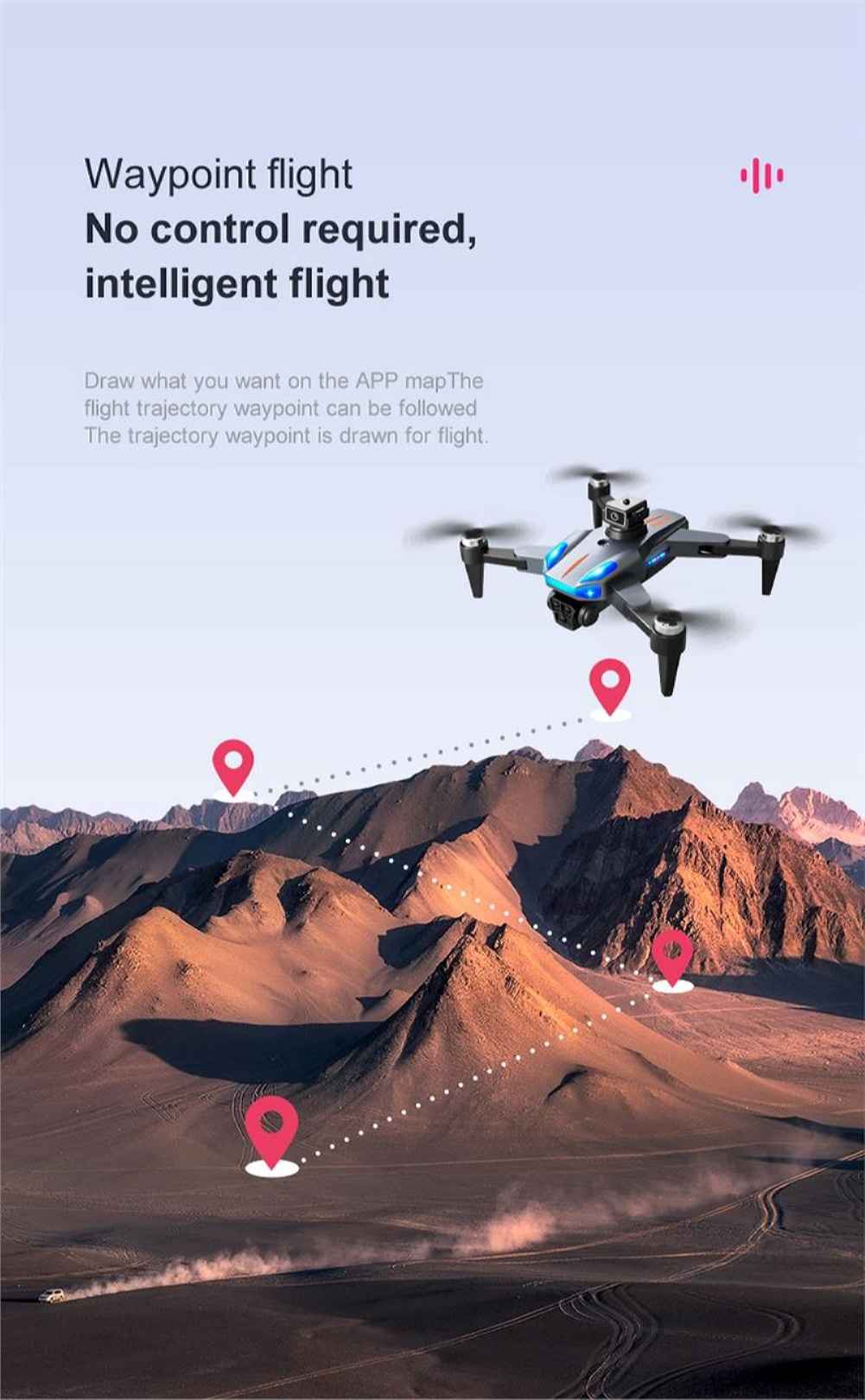 – Way-point Flight: Plan your flying route by drawing the dots on the built-in map on the App, recording beautiful scenery along the route.