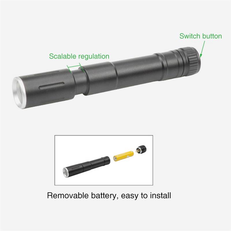 – The flashlight needs to be powered by 1*AAA battery(not included),which is convenient for energy saving.