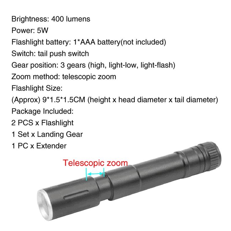 Flashlight Battery: 1*AAA Battery (NOT Included)