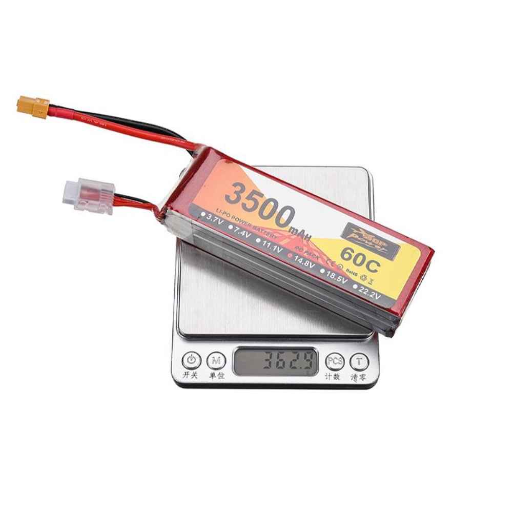The ZOP POWER 14.8V 3500mAh 60C 4S LiPo Battery is designed for optimal performance in RC drones. Featuring a high-capacity 3500mAh and a robust 60C discharge rate, this battery ensures long-lasting power and efficiency. It is equipped with an XT60 plug for secure and reliable connectivity. The battery measures 30 x 45 x 135mm and weighs approximately 362.9g, making it a compact yet powerful choice for your RC needs. Please handle the battery with care: avoid over-charging or discharging, and do not expose it to high temperatures or throw it into fire or water.